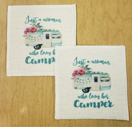 Linen Coaster – 4" x 4", 2-ply square, 2 Pack. Natural colored polyester linen, natural fiber fabric which may contain color variations and imperfections.